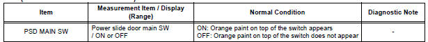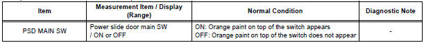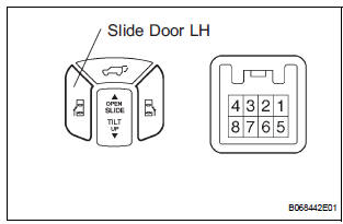 HINT: If the switch does not illuminate, it will not affect the ON / OFF function of the switch. For the illumination check, refer to SLIDE DOOR SYSTEM