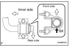 NOTICE: Install the bushings with the slit facing on the rear side of the vehicle.
