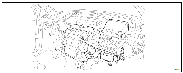 (b) Temporarily tighten the air conditioning unit assembly with the nut.