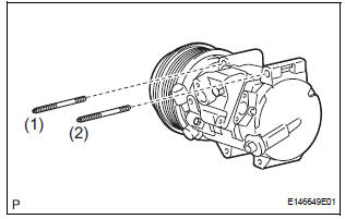 (a) Using a "TORX" socket wrench (E8), install the compressor and magnetic clutch with the 2 stud bolts.