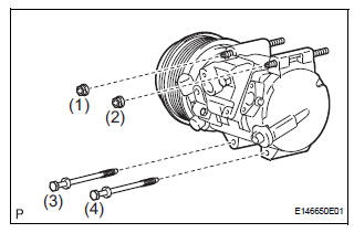 (b) Install the compressor and magnetic clutch with the 2 bolts and the 2 nuts.