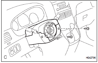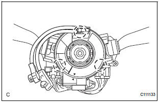 NOTICE: When replacing the spiral cable with a new one, remove the lock pin before installing the steering wheel assembly.
