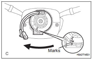NOTICE: Do not turn the spiral cable by the airbag wire harness.