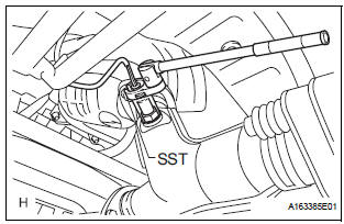 (a) Using SST, install the heated oxygen sensor to the front exhaust pipe.