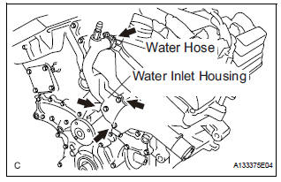 (b) Install the water inlet housing with the 2 bolts and nut.