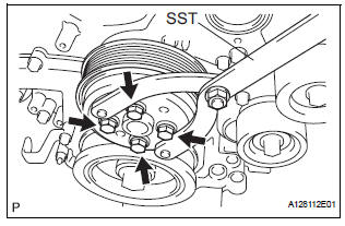 (a) Temporarily install the water pump pulley with the 4 bolts.