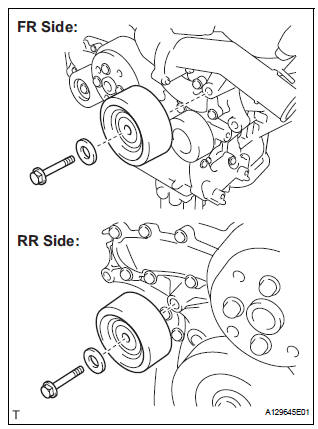 (a) Install the 2 idler pulley cover plates and idler pulley sub-assemblies with the 2 bolts.