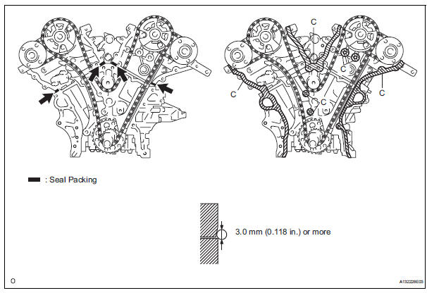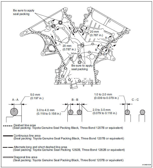 (b) Apply seal packing in a continuous line to the timing chain cover as shown in the following illustration.