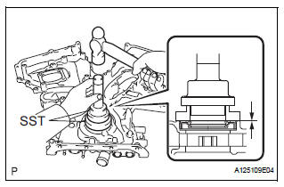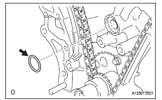 (a) Using SST, tap in a new oil seal until its surface is flush with the timing chain case edge.