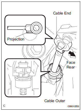 (b) When installing the transmission control cable assembly on the shift lever plate, place the projection to the shift lever plate (FIG. 2).