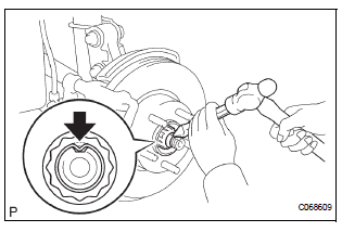 Torque: 294 N*m (3,000 kgf*cm, 217 ft.*lbf) (b) Using a chisel and hammer, stake the axle hub LH nut.