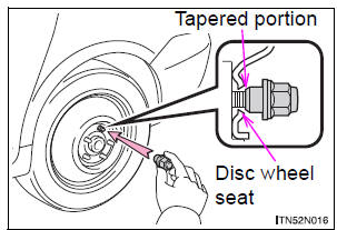Tighten the wheel nuts until the tapered portion comes into loose contact with the disc wheel seat.