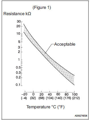 The IAT sensor has a built-in thermistor with a resistance that varies according to the temperature of the intake air. When the IAT is low, the resistance of the thermistor increases. When the temperature is high, the resistance drops. These variations in resistance are transmitted to the ECM as voltage changes (see Fig. 1).