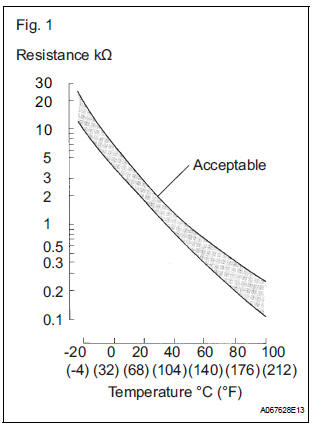The IAT sensor has a built-in thermistor with a resistance that varies according to the temperature of the intake air. When the IAT becomes low, the resistance of the thermistor increases. When the temperature becomes high, the resistance drops. These variations in resistance are transmitted to the ECM as voltage changes (see Fig. 1).