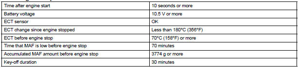 The ECM performs OBD II monitoring based on the values from the intake air temperature sensor. If there is no change in the sensor value, the ECM will not be able to perform OBD II monitoring or will misdiagnose that there is a malfunction in the sensor. The ECM detects the stuck intake air temperature sensor value by performing monitoring after the ignition switch is turned off or the ignition is started (short soak or long soak).