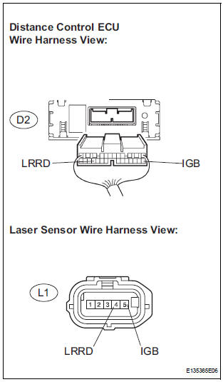 1 CHECK HARNESS AND CONNECTOR (DISTANCE CONTROL ECU - LASER SENSOR)