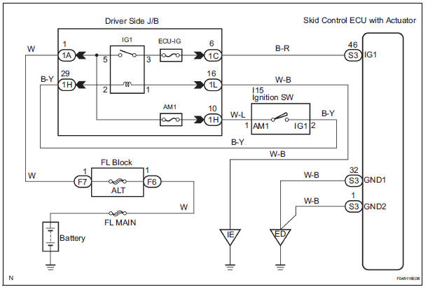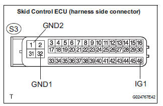 3 INSPECT SKID CONTROL ECU (IG1 TERMINAL)