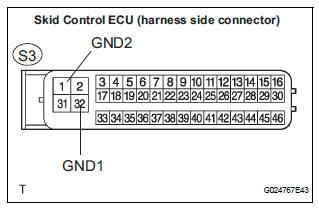 4 INSPECT SKID CONTROL ECU (GND TERMINAL)