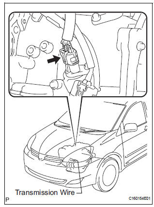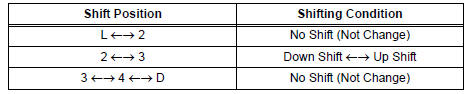 When driving with the transmission wire disconnected, the shift lever position is in l or 2, the gear position is held in 3rd and the shift lever position is in 3, 4 or d, the gear position is held in 4th. However, when the shift position is in r or p, the operation is same as usual