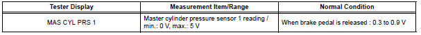 1 READ VALUE ON INTELLIGENT TESTER (MASTER CYLINDER PRESSURE SENSOR)