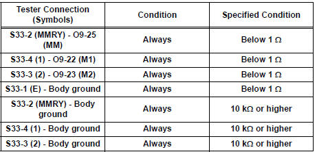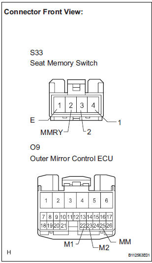 3 CHECK HARNESS AND CONNECTOR (SEAT MEMORY SWITCH - OUTER MIRROR CONTROL ECU)