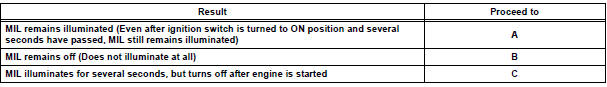 The MIL operation can be checked visually. When the ignition switch is first turned to the ON position, the MIL should be illuminated and should then turn off. If the MIL remains illuminated or is not illuminated, conduct the following troubleshooting procedure using the intelligent tester.