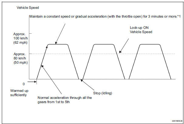 HINT: *1: Drive at such a speed in the uppermost gear, to engage lock-up. The vehicle can be driven at a speed lower than that in the above diagram under the lock-up condition.