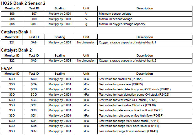 If you use a generic scan tool, multiply the test value by the scaling value listed below.