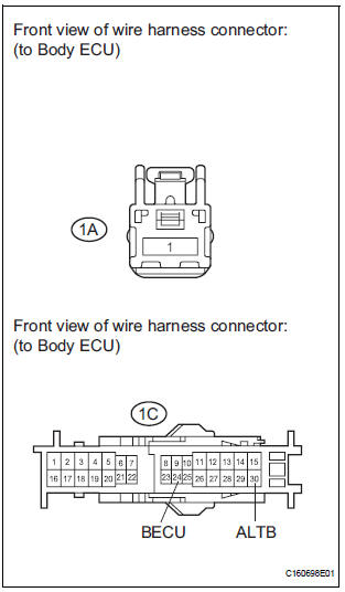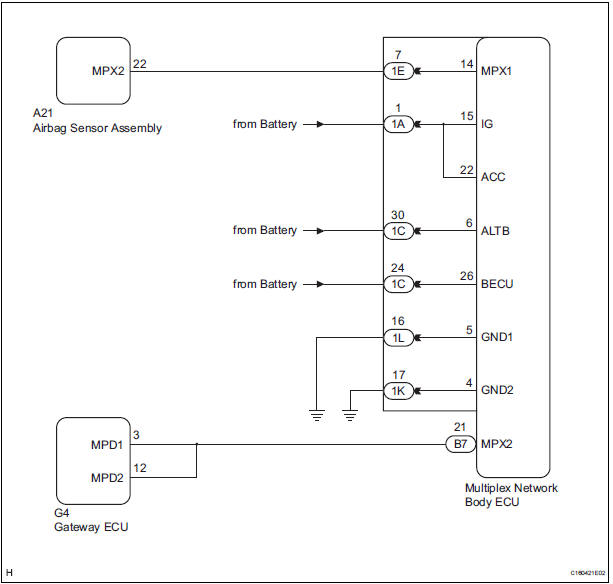 1 CHECK HARNESS AND CONNECTOR (MULTIPLEX NETWORK BODY ECU - BATTERY)