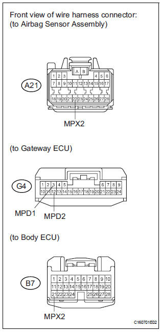 This DTC is detected when communication between the multiplex network body ECU and the multiplex network gateway ECU stops for more than 10 seconds.