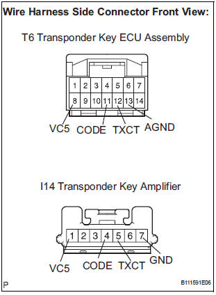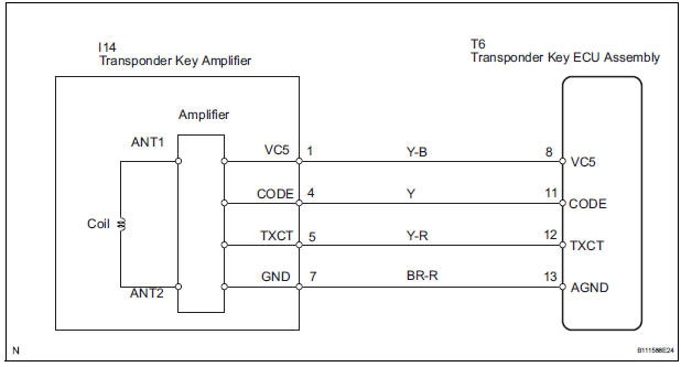 4 CHECK HARNESS AND CONNECTOR (TRANSPONDER KEY ECU ASSEMBLY - TRANSPONDER KEY AMPLIFIER)