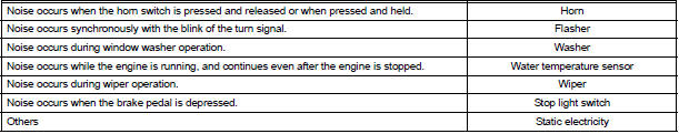 HINT: The radio has a noise prevention function to reduce noise when listening to the radio. If a loud noise occurs, check whether the ground at the antenna mounting base and the noise prevention unit are installed and wired correctly.
