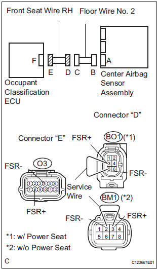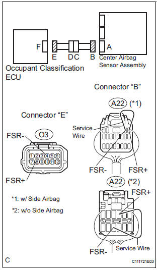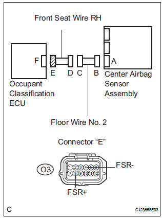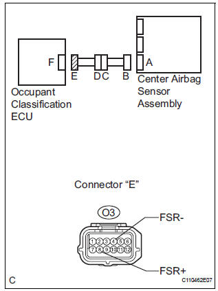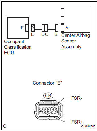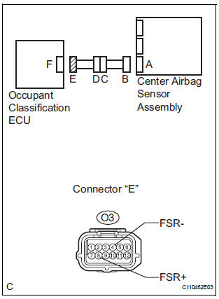 The occupant classification system circuit consists of the center airbag sensor assembly and the occupant classification ECU.