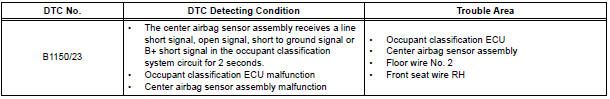 DTC B1150/23 is recorded when a malfunction is detected in the occupant classification system circuit.