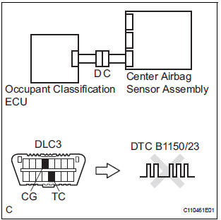 If the center airbag sensor assembly receives signals from the occupant classification ECU, it determines whether or not the front passenger airbag, the front seat side airbag RH, and front seat belt pretensioner RH should be operated.