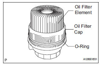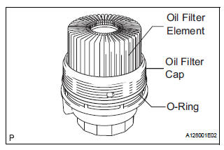 (f) Remove the oil filter element and O-ring from the oil filter cap.