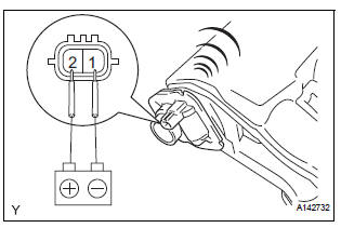 (2) Apply battery voltage between terminals 1 (-) and 2 (+) of the intake air control valve. Check that a clicking sound is heard from the intake air control valve.