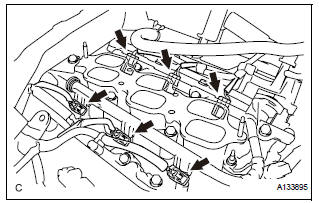 Torque: 18 N*m (184 kgf*cm, 13 ft.*lbf) (f) Connect the 6 fuel injector connectors.