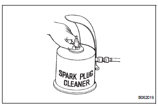 HINT: Only use the spark plug cleaner when the electrode is free of oil. If the electrode has traces of oil, use gasoline to clean off the oil before using the spark plug cleaner.