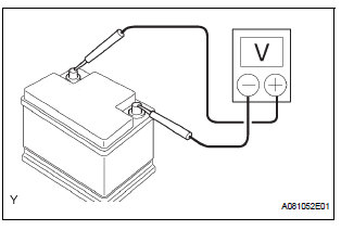 (3) Connect the positive (+) lead of a voltmeter to positive (+) terminal of the battery.