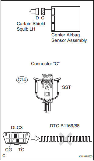 OK: DTC B1166/88 is not output. HINT: Codes other than DTC B1166/88 may be output at this time, but they are not related to this check.