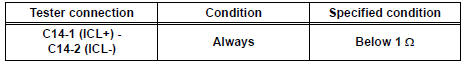 CAUTION: Never connect a tester to the curtain shield airbag assembly LH (curtain shield squib LH) for measurement, as this may lead to a serious injury due to airbag deployment.