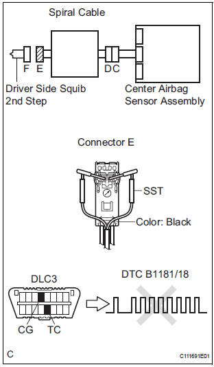HINT: Codes other than DTC B1181/18 may be output at this time, but they are not related to this check.