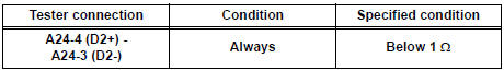 CAUTION: Never connect a tester to the steering pad (driver side squib 2nd step) for measurement, as this may lead to a serious injury due to airbag deployment.