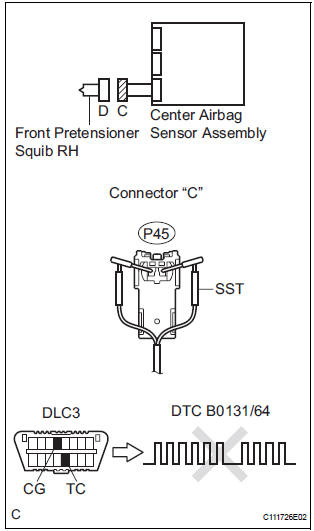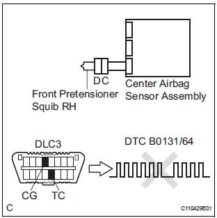 HINT: Codes other than DTC B0131/64 may be output at this time, but they are not related to this check.