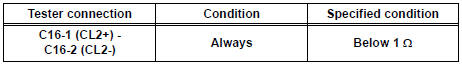 CAUTION: Never connect a tester to the curtain shield airbag assembly LH (Rear curtain shield squib LH) for measurement, as this may lead to a serious injury due to airbag deployment.
