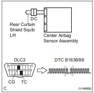 HINT: Codes other than DTC B1636/88 may be output at this time, but they are not related to this check.