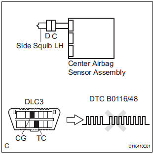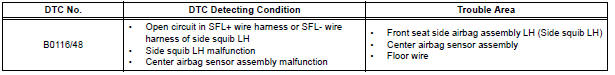 DTC B0116/48 is recorded when an open circuit is detected in the side squib LH circuit.