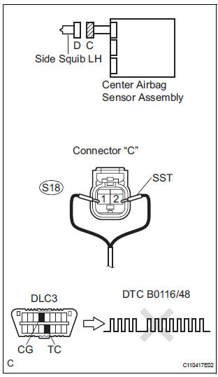 HINT: Codes other than DTC B0116/48 may be output at this time, but they are not related to this check.