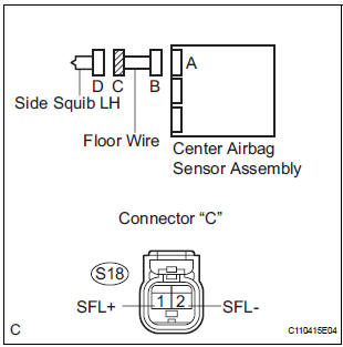The side squib LH circuit consists of the center airbag sensor assembly and the front seat side assembly LH.